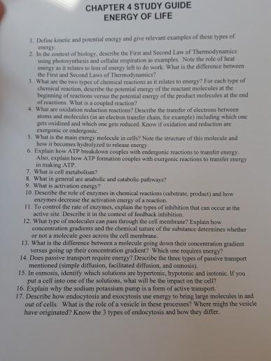 Solved Chapter 4 Study Guide Energy Of Life 1 Define Chegg Com